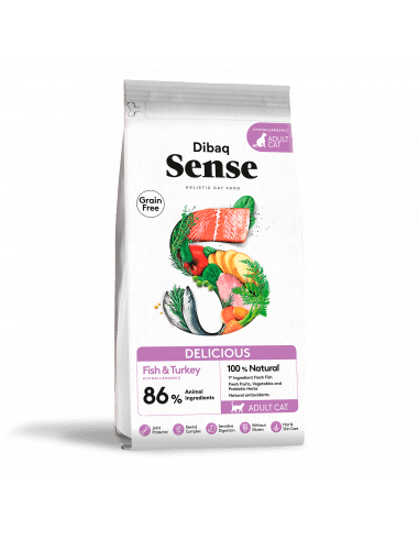 סנס חתול בוגר דגים והודו דלישס הוא מזון יבש, טבעי ונטול דגנים לחתולים בוגרים מכל הגזעים. הפורמולה משלבת סלמון טרי, הרינג טרי והודו מיובש. כך היא מספקת חלבון איכותי, אומגה 3 ואומגה 6 לשמירה על עור בריא ופרווה מבריקה.