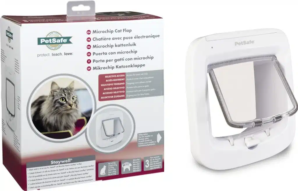 דלת לחתול עם מיקרו־צ'יפ שבב של חברת פטסייף מעניקה לחתול חופש תנועה תוך שמירה על ביטחון הבית. הדלת מזהה את המיקרו־צ'יפ הייחודי של החתול. רק הוא יכול להיכנס ולצאת.