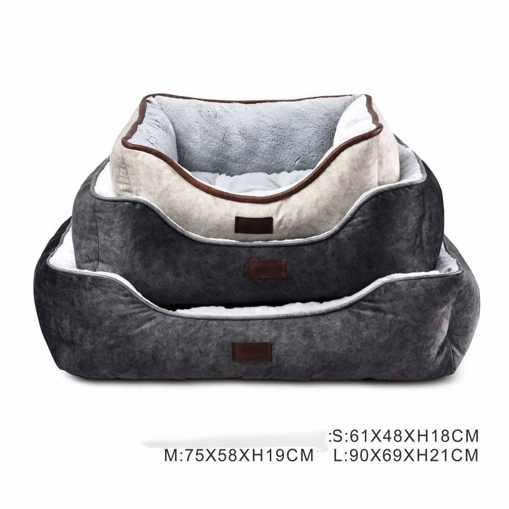 המיטה מרופדת בבד קטיפתי רך, כוללת דפנות בגובה מדויק, ובעלת בסיס מונע החלקה שישמור על יציבות גם בכל קפיצה קטנה של הכלב.
