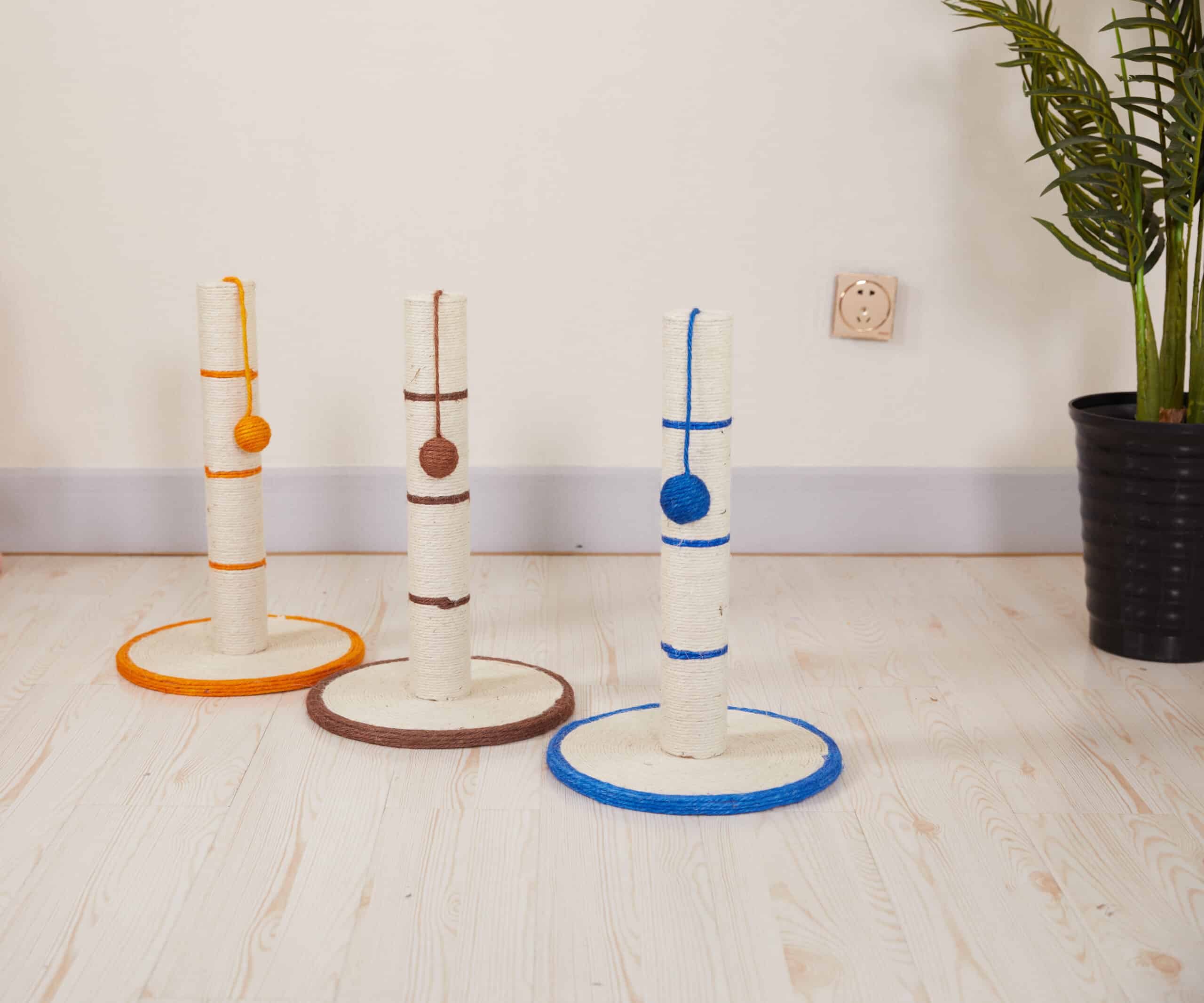 העמוד מצפה חבל סיזל טבעי שמזמין את החתול לשרוט ולהוציא אנרגיה. החומר העמיד שומר על תחושת גירוד אמיתית ומושך אותו להשתמש במתקן במקום בספות או בווילונות. כך הוא מטפח את ציפורניו ושומר עליהן חדות, ואתה נהנה מבית מוגן ורהיטים שמורים.