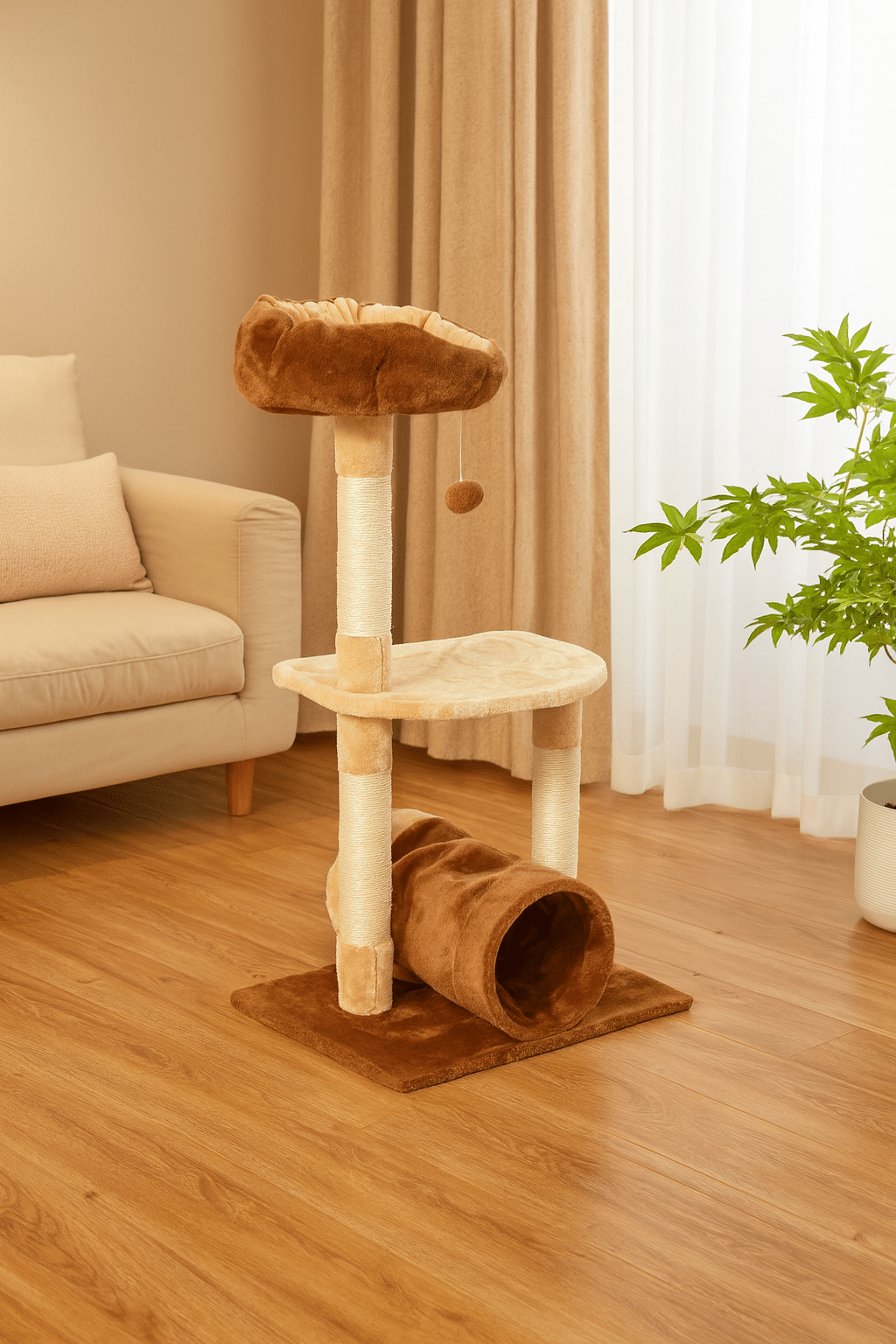 מתקן גירוד לחתולים עם מנהרה ומיטת קערה – גובה 95 ס"מ מציע לחתול שלך חוויה מלאה של משחק, גירוד ומנוחה. 🐾 החתול מטפס על הפלטפורמות, מתרווח במיטה העליונה או מתחבא במנהרה שבתחתית. בזכות המבנה הקומפקטי, המתקן משתלב בקלות בכל בית ומתאים גם לדירות קטנות.