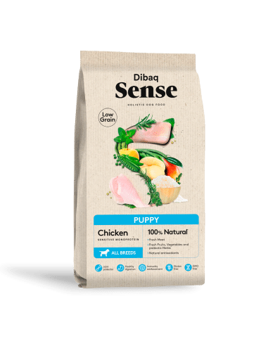 סנס מופחת דגנים עוף לגורים הוא מזון יבש, היפואלרגני ואיכותי במיוחד, המיועד לגורים ולאימהות בתקופת ההיריון וההנקה. הפורמולה מבוססת על עוף טרי, ירקות ופירות טריים, לצד אורז קל לעיכול – כולם ברמה המתאימה למאכל אדם. בזכות הרכבו המאוזן, המזון מספק לגורך את כל הרכיבים התזונתיים הדרושים להתפתחות בריאה, חיזוק מערכת החיסון ותמיכה במפרקים.